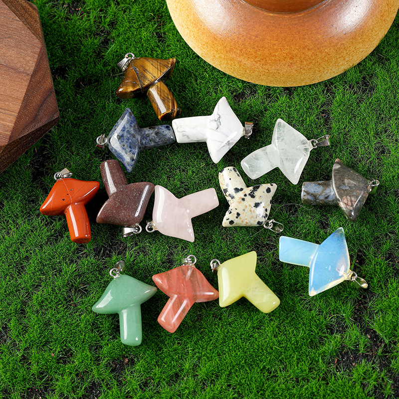 クロスボーダー熱売新品天然石水晶虎眼石小キノコペンダント東陵玉傘形ネックレスペンダント