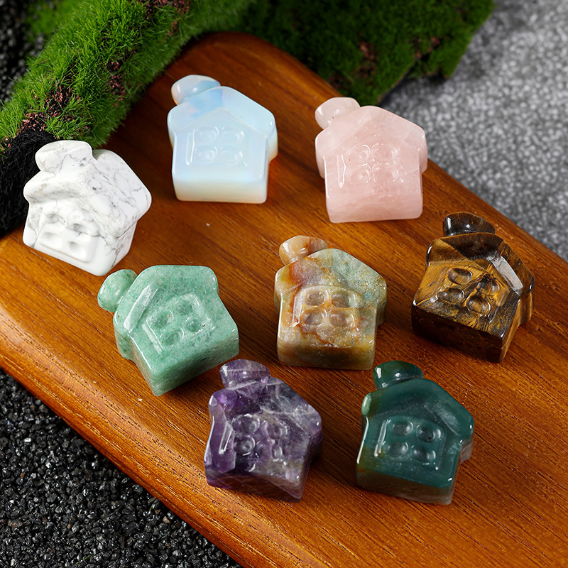 クロスボーダー新製品天然水晶小家屋彫刻置物玉瑪瑙水晶工芸品子供プレゼント卸売り
