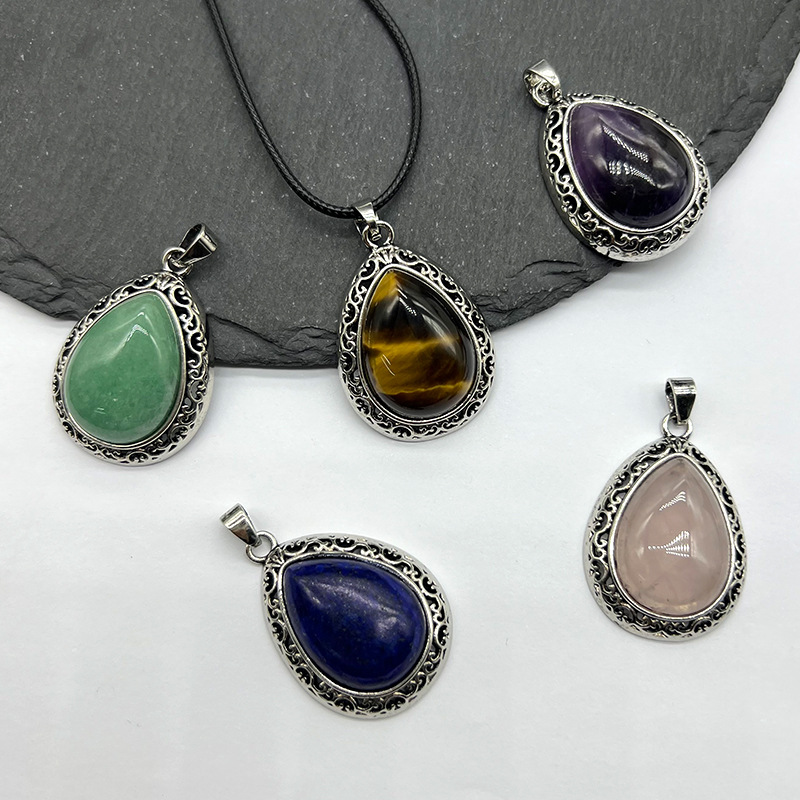 天然水晶瑪瑙半宝石水滴ペンダント宝石象眼合金紫水晶虎眼石粉水晶ネックレス