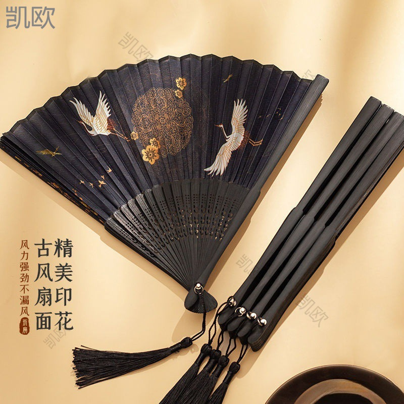 古風扇子折扇女子学生覇気仙気刺繍流蘇古代男漢服手持ち舞扇道具卸売り