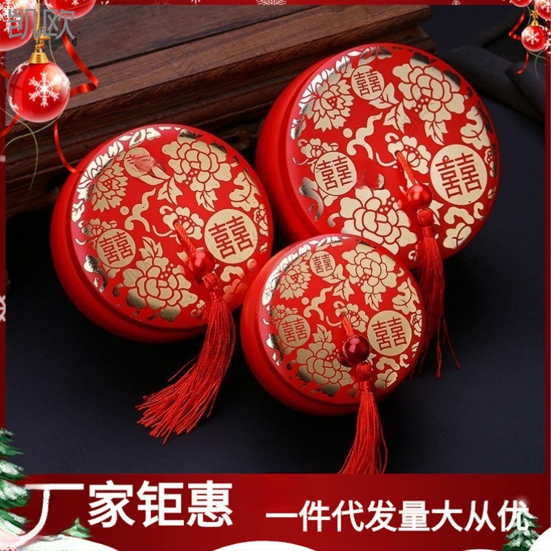 創意結婚砂糖箱ドラム型缶ブリキ喜糖箱子風結婚式用品キャンディー円鉄箱