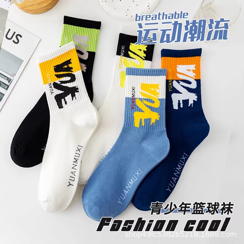 スポーツソックスメンズミッドカーフソックス春夏綿ソックス通気性青少年バスケットボールソックス学生夏のトレンドロングソックス