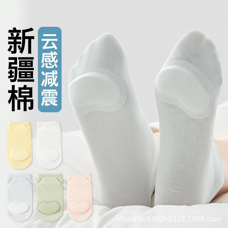 女性の純綿ショートソックス春と夏の薄い衝撃吸収綿パッド吸汗性と通気性のある新疆綿ボンレス無地ボートソックス