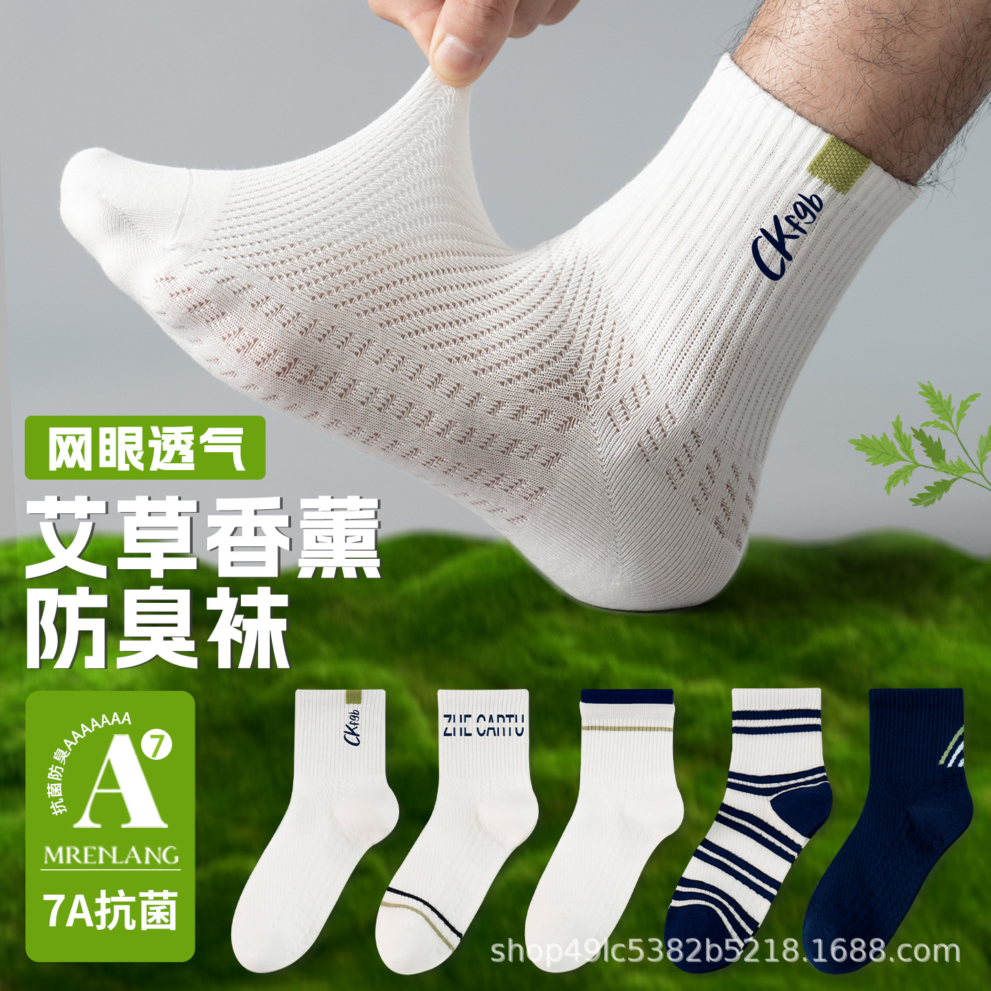 靴下メンズ 7a 抗菌防臭メンズ夏と秋のメンズソックス吸汗性通気性トレンディなスポーツメッシュカジュアルコットンソックス