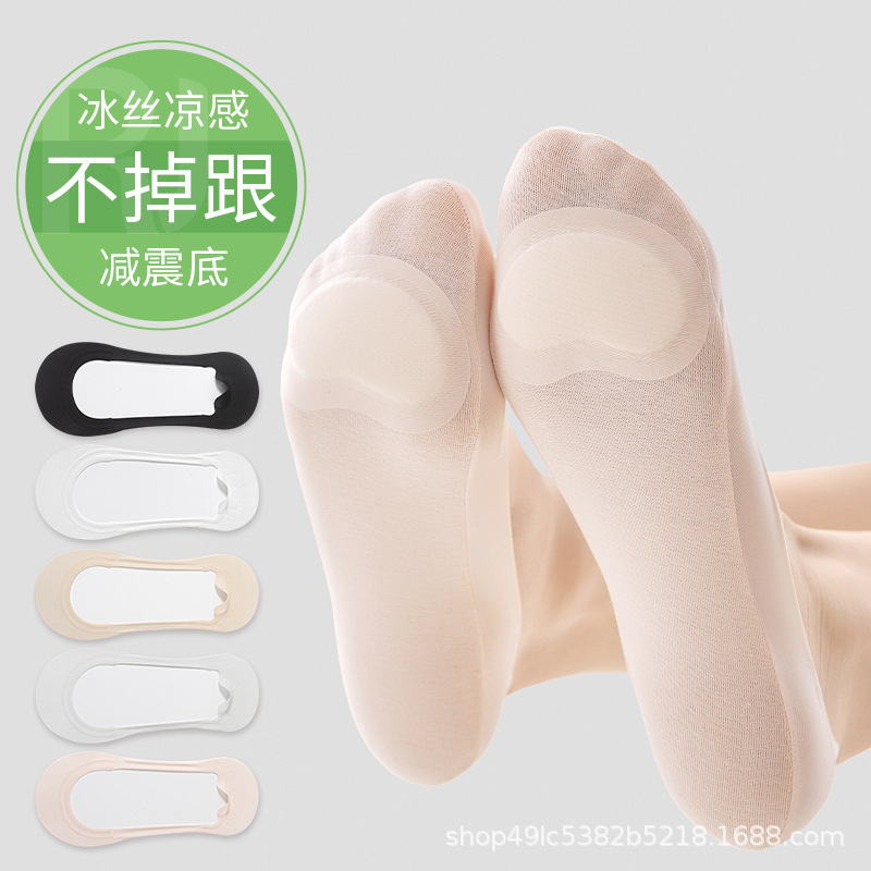 アイスシルクボートソックス女性の純綿夏薄い滑り止めハイヒールソックス浅い口吸汗性女性の目に見えない靴下