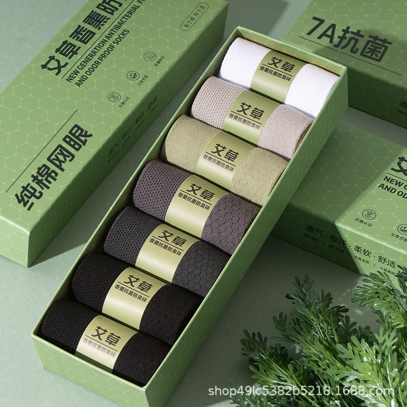 靴下 メンズ 春夏 7A 抗菌よもぎアロマ消臭 吸汗通気性 滑り止め スポーツ 箱入り メンズ ミッドカーフソックス