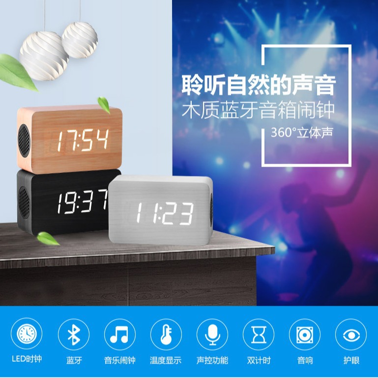 ワイヤレスbluetooth音楽時計立体音質ギフト時計情報時計家庭用ビジネスオフィスデュアルオーディオ