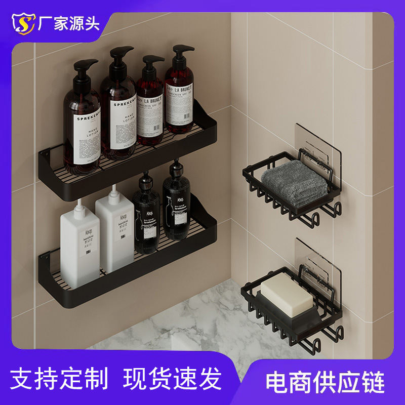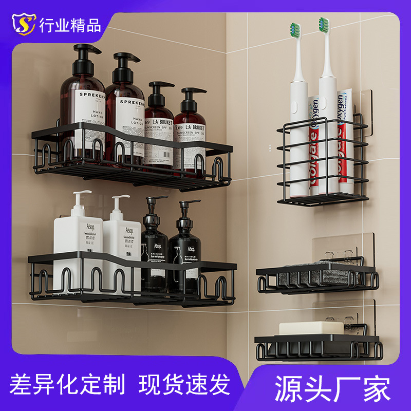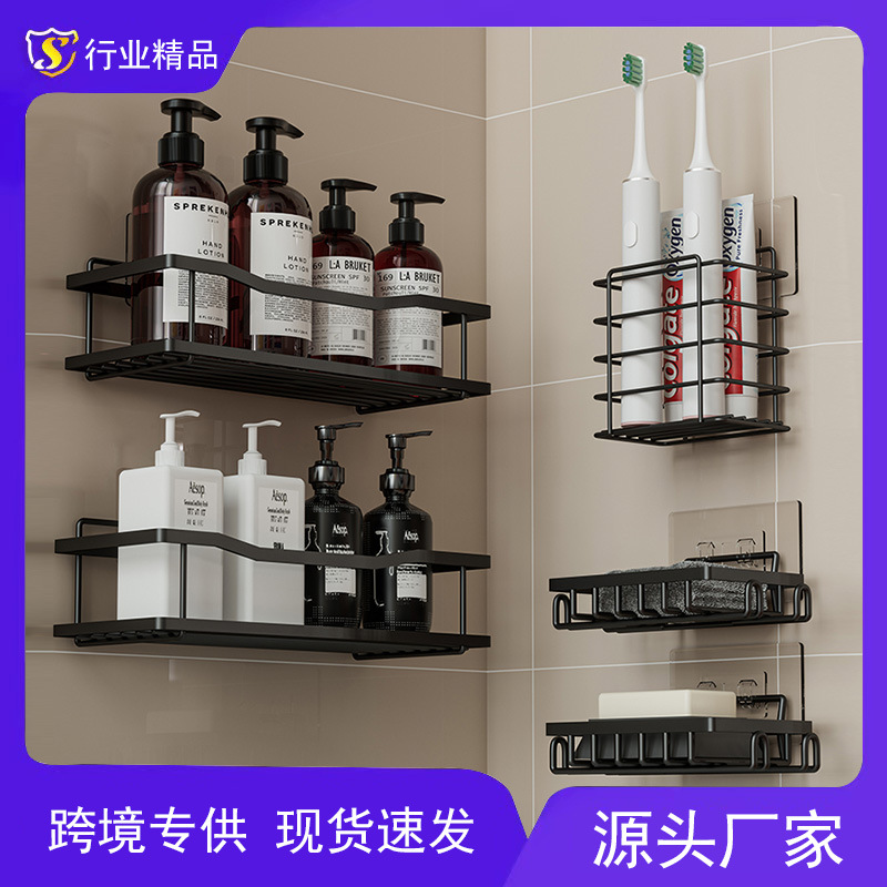 国境を越えた浴室の棚に穴を開けないトイレの鉄芸洗面用品の収納棚に釘をつけない壁掛け式歯ブラシホルダーがある