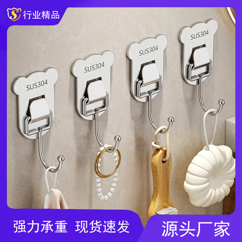 ベアー304ステンレスフック釘なし壁フードフック穴なしドア後キッチントイレ浴室フック