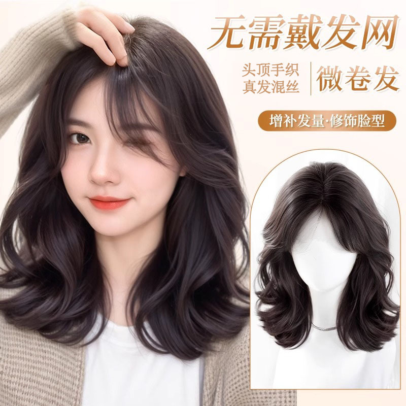 韓系かつら微巻短髪気質女性日常ネット赤同型減齢bobo頭新自然全頭セット式