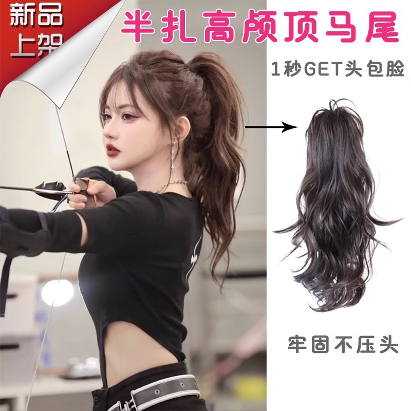 カツラのカツラのカツラのテールの女性のシミュレーションのカールの編み物の新しい中国式のクリップの中で長い髪の半分は髪のカツラを刺します。