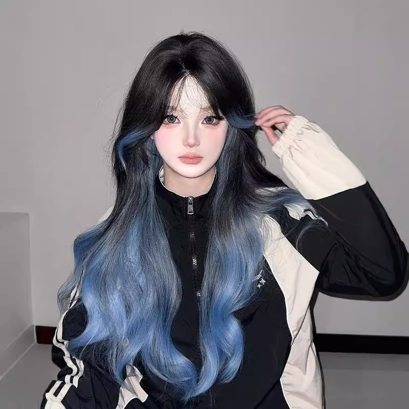 かつらの女性の長い髪のアイリスの青い中は新型の全頭カバーの新しい工芸の雰囲気感のグラデーションの色の長い髪の毛のかつらのカバーを分けます。