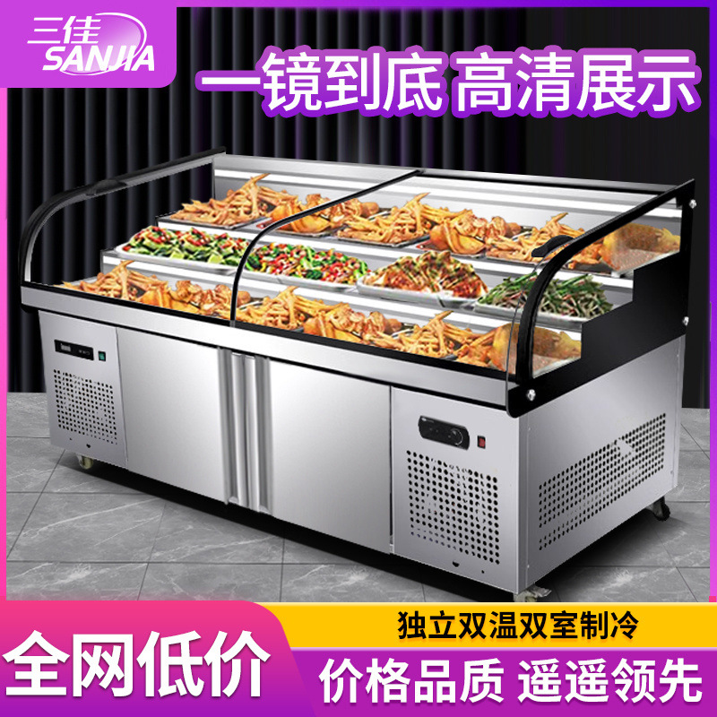 三佳業務用展示棚アイススタンド海鮮食品保存ホテルの階段に屋台を置いて料理を注文します。冷蔵冷凍バーベキュー冷蔵庫です。