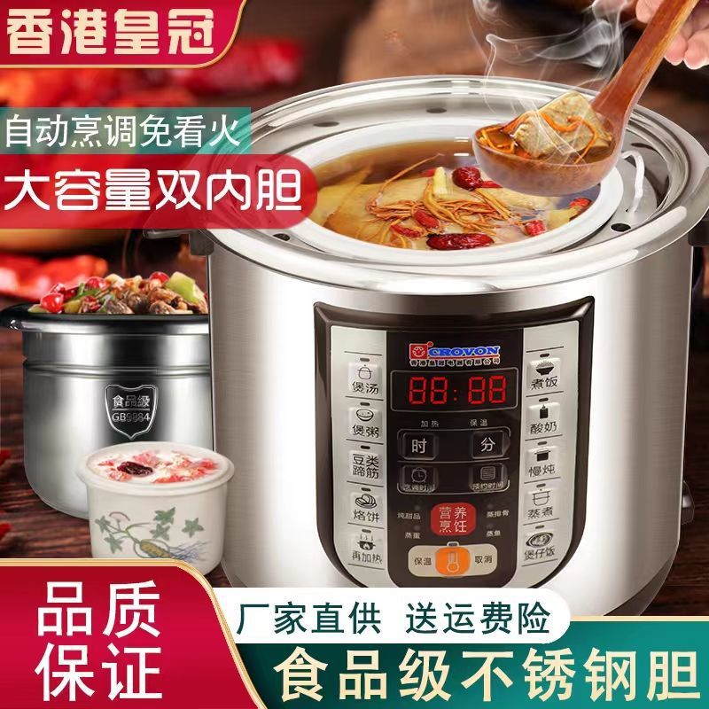 香港クラウン電気煮込み鍋家庭用大容量煮粥煮込みツバメの巣煮込みスープ陶磁器隔水煮込みスプーン養生全自動