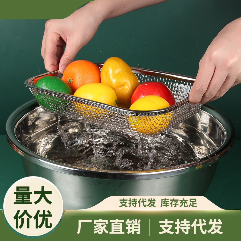ステンレス製の細かい穴の水切りかご、厚手、家庭用キッチン、果物洗い、多用途水切りボウル、米とぎ、水切り、野菜洗いかご