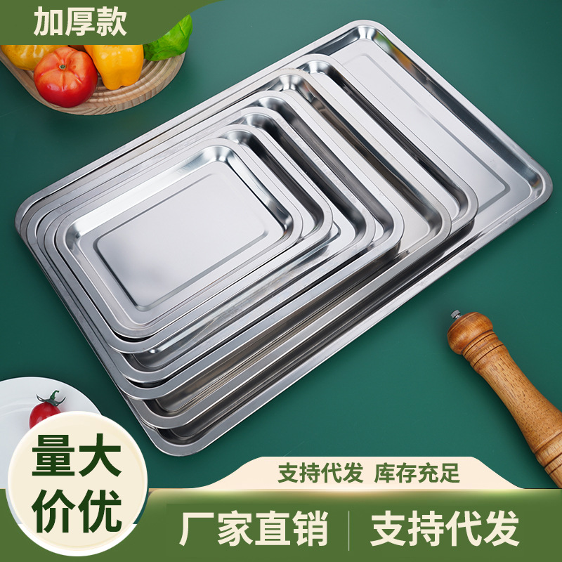 ステンレス角皿餃子皿長方形トレー電解食事皿食堂厚いステンレス蒸し器卸売り