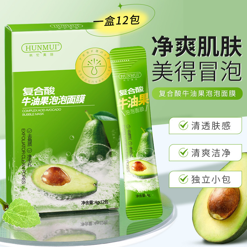 韓倫美羽複合酸牛油果泡マスク深層洗浄泥膜4g * 12包-