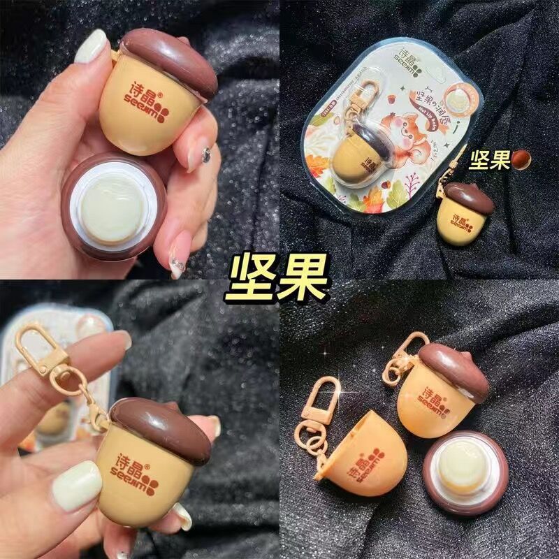 詩晶秋冬ナッツ水蜜桃イチゴ無色潤唇膏保湿潤い薄め唇紋児童-36