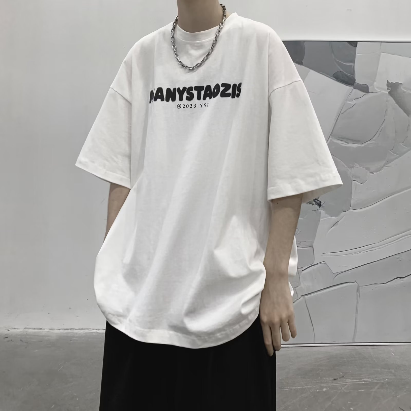 潮牌tシャツ男2023新半袖夏服上着純綿ゆるい白tシャツ半袖シャツ