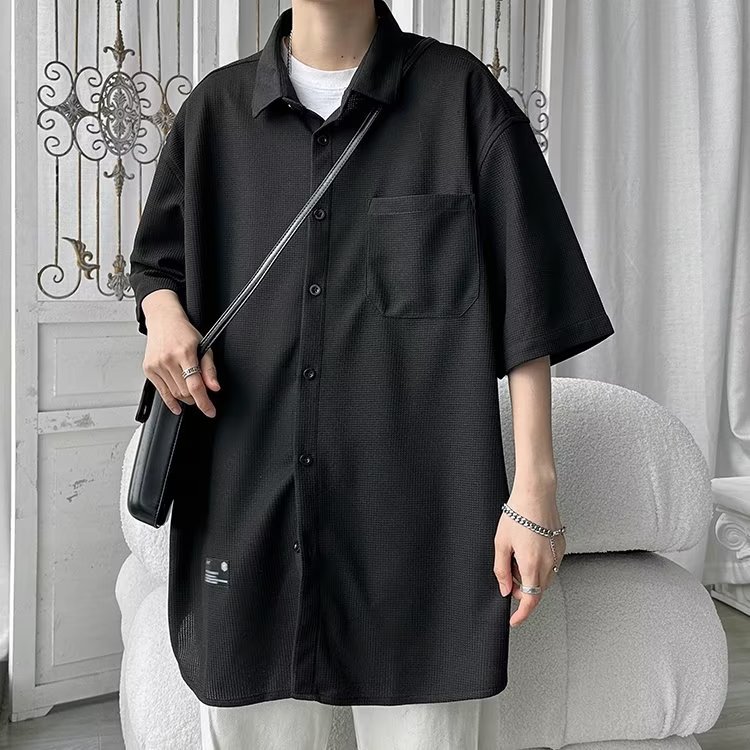 夏のワッフルシャツの男性半袖のゆったりした大きいサイズのコートの白いシャツの男性のファッションのブランドのカジュアルな薄いタイプのコート