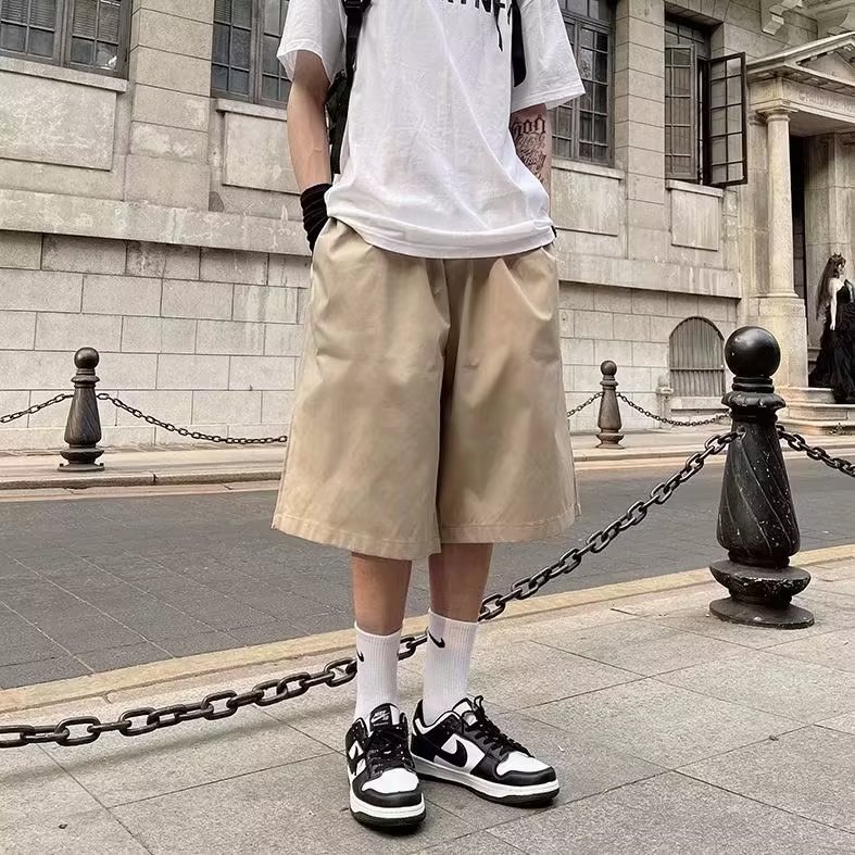 半ズボンの男性の夏のゆったりした香港風の潮流の格好いい純色のカジュアルなズボンの韓国版の学院の風の百合のまっすぐな筒の5分のズボン