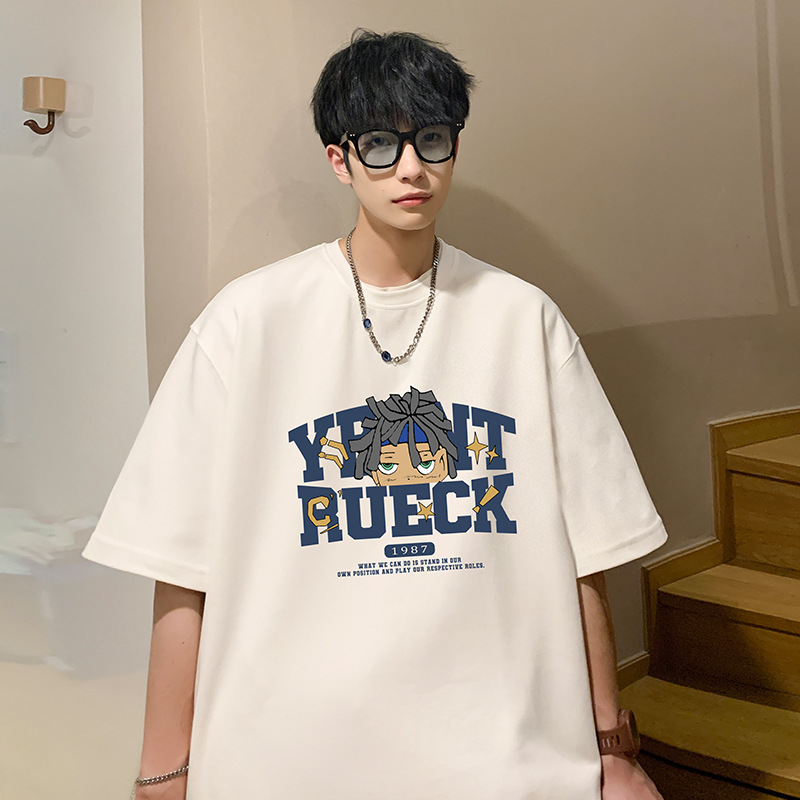 夏の重ポンド純綿半袖tシャツ男性ins潮牌アメリカ街頭ゆるい半袖tシャツ服