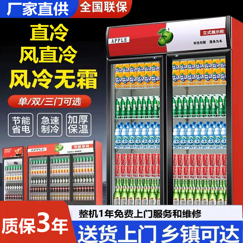 商用啤酒饮料柜立式水果蔬菜冷藏保鲜柜单/双/三门超市专用展示柜