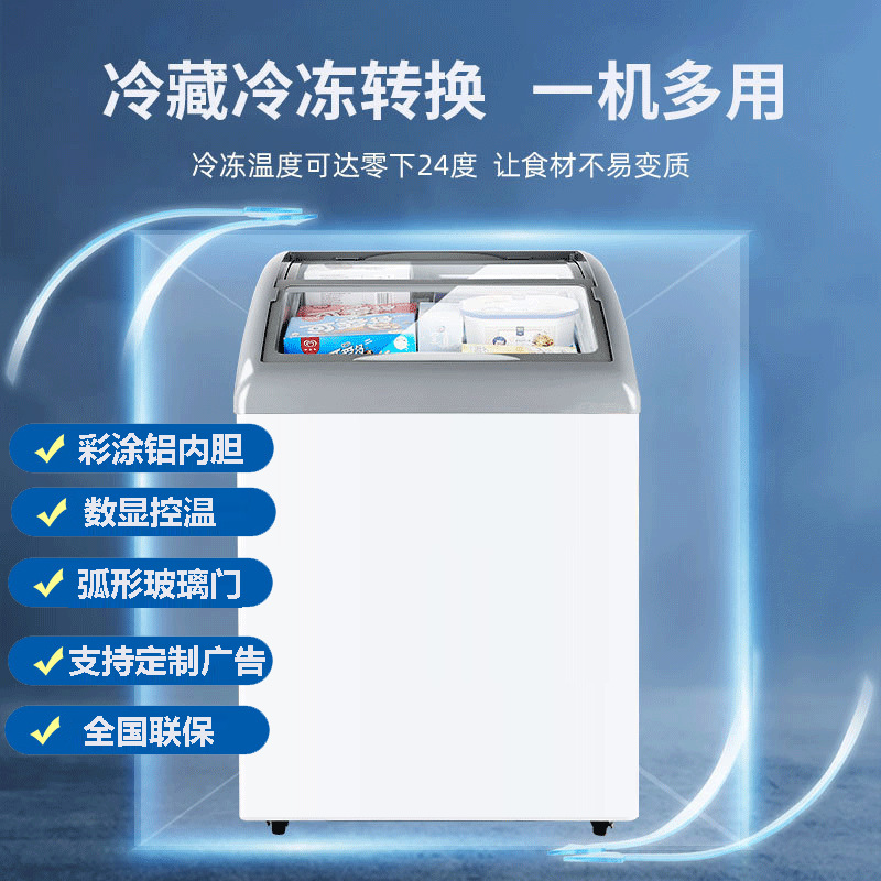 商用大容量横型冷凍庫冷蔵庫家庭用冷凍庫新鮮保持冷凍庫全銅管商用横型冷凍