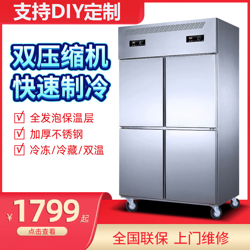 業務用四門急凍冷蔵庫冷凍庫キッチンステンレス冷蔵冷凍庫縦型大容量新鮮保持冷凍庫