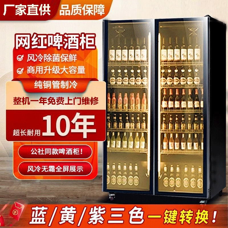 ワハハ商用冷蔵展示棚大シングルドア飲料棚風冷無霜保存棚縦型全画面ビール棚