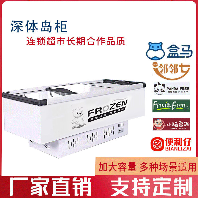 横型冷凍庫ガラス展示棚野菜肉類海鮮冷凍島棚アイスクリーム棚二開きフラット島棚