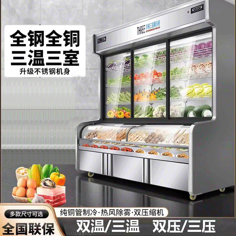 三温料理棚麻辣热焼きショーケース双温冷蔵冷凍庫