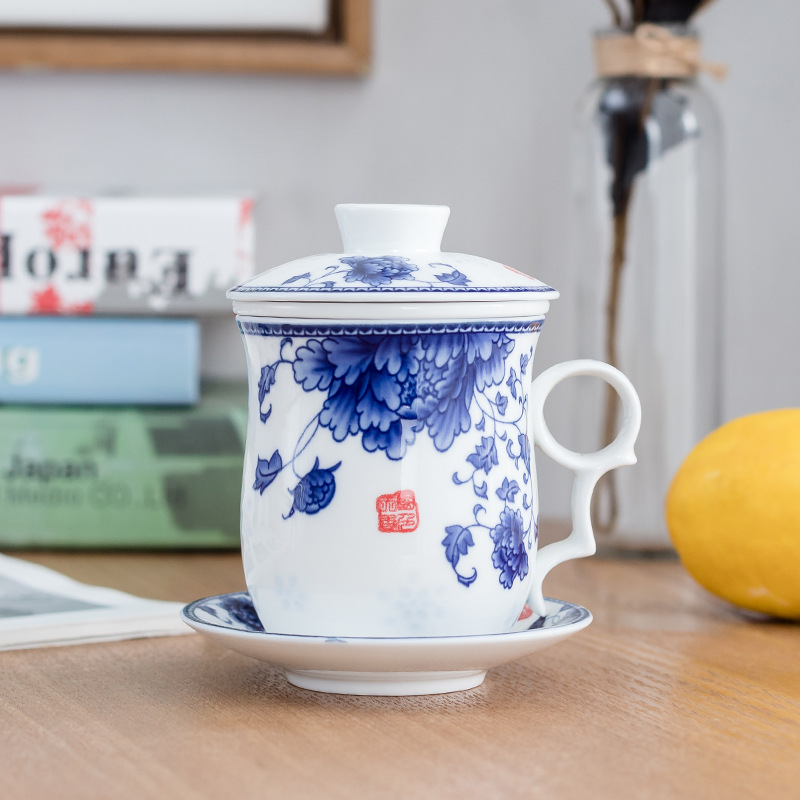 卸売り創意陶磁器杯陶磁器蓋付き濾過事務個人泡茶杯四点セットプレゼントロゴ