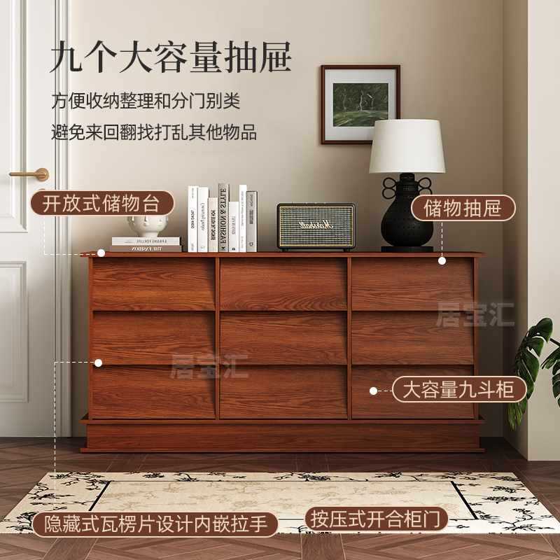 ✅ アンティークリビングルーム収納、ベッドルーム収納キャビネット、ベッドサイド引き出し収納、レトロサイドボード、ソファサイドの9段キャビネット