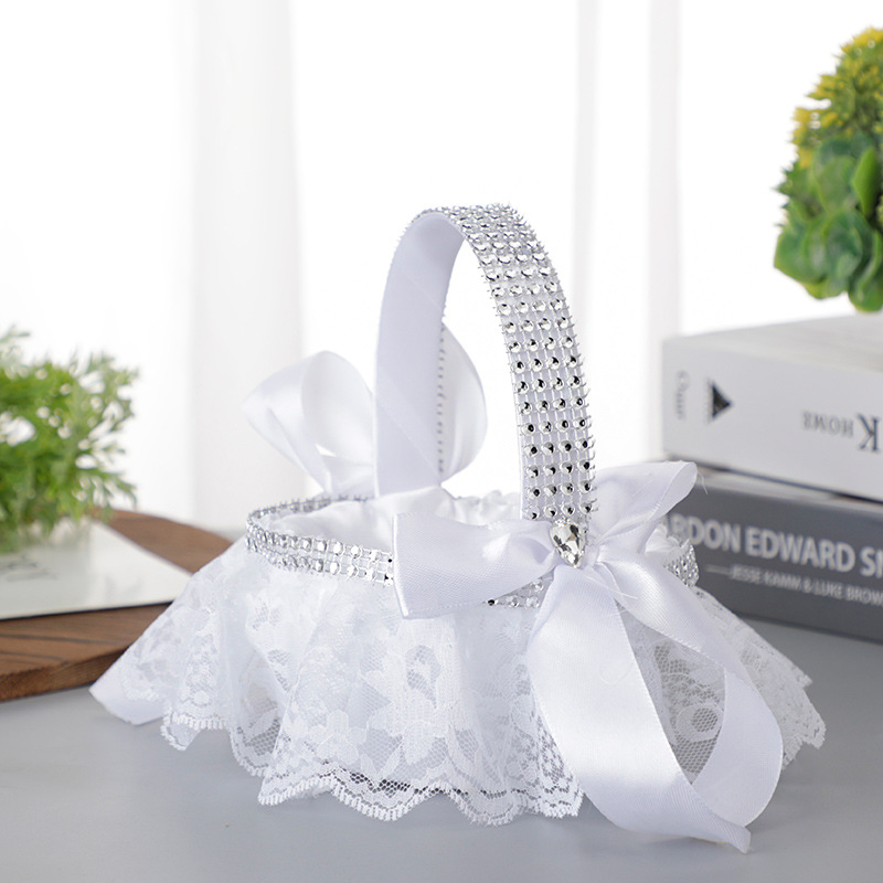 洋式の結婚式の小さい花のかごのレースの蝶結びの新婦の花の子供は花のかごの結婚式の結婚祝いの用品の卸売りを撒きます。
