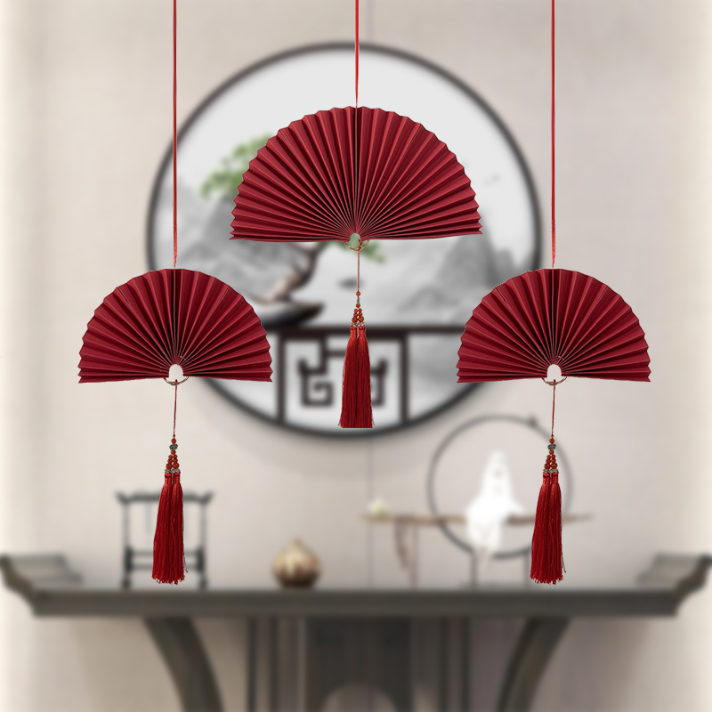 新年の元旦の春節のテーマの赤い紙の扇風機のデパートのショーウインドーの装飾は宝石の店を飾って中国式の卸売りを飾ります。