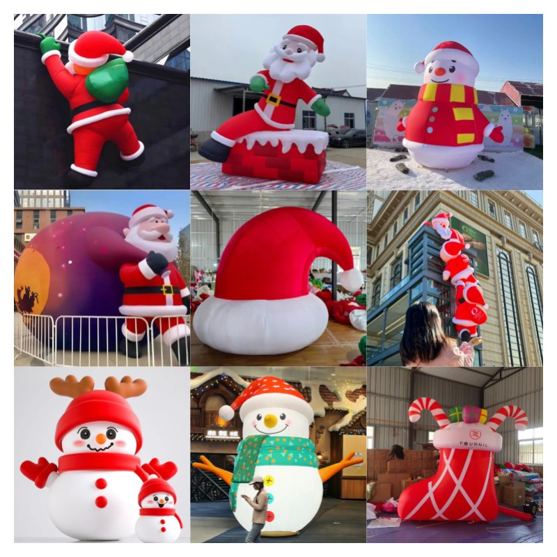 空気を入れるサンタクロースの空気型は壁に登ります。