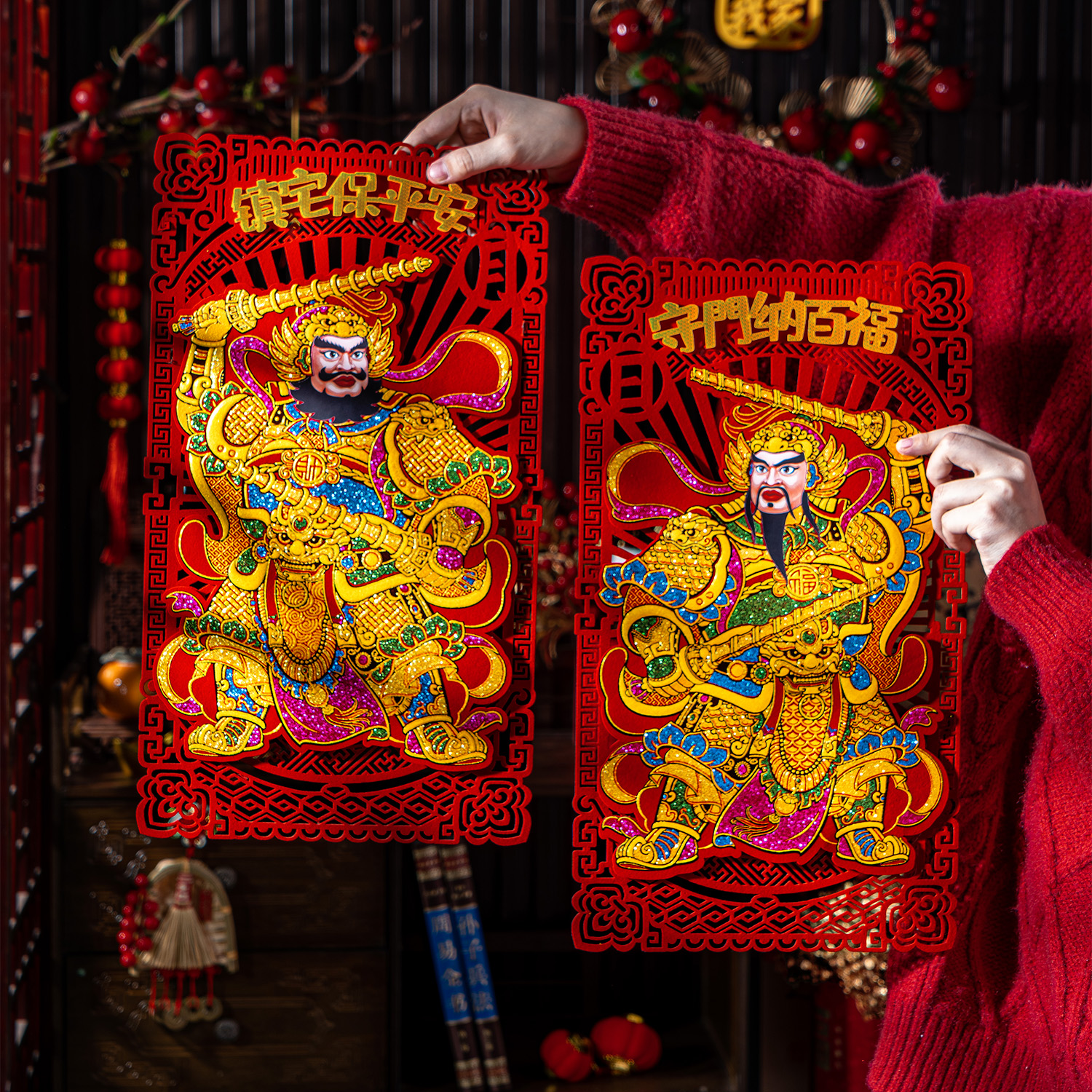 2025蛇年新年装飾門神春節旧正月鎮宅秦叔宝尉遅恭貼り門貼り立体卸売り