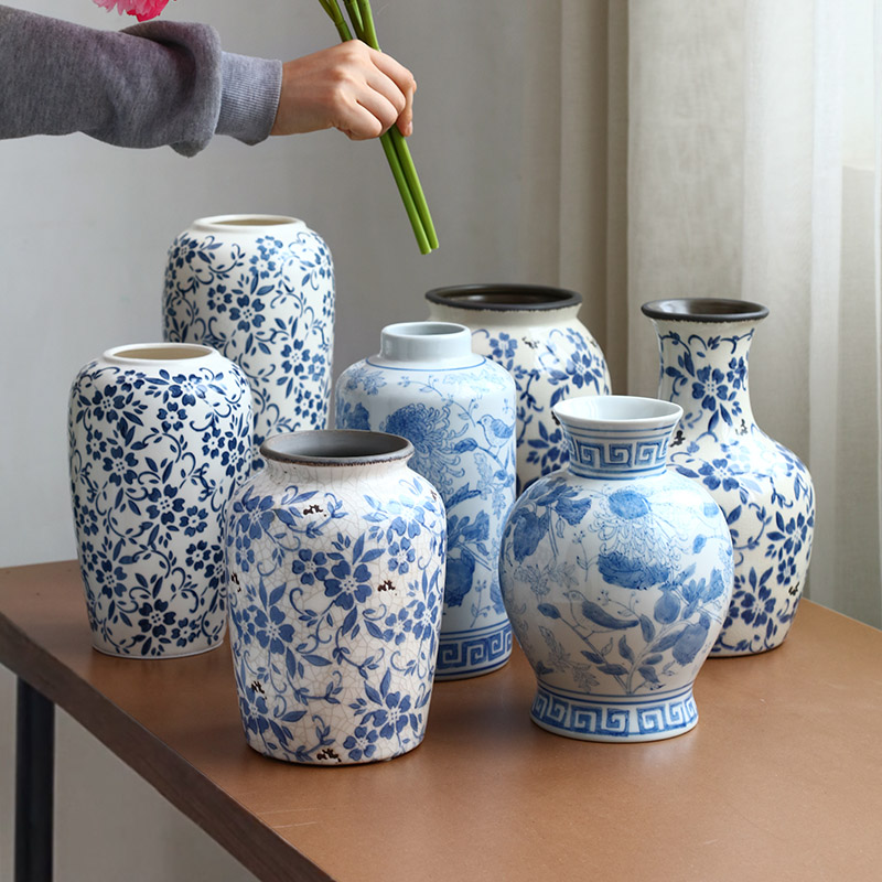 新中国式の青花磁器の陶磁器の花瓶は家庭の民宿の玄関の斗の戸棚のテレビの戸棚の花器を飾って卸売りを挿します。