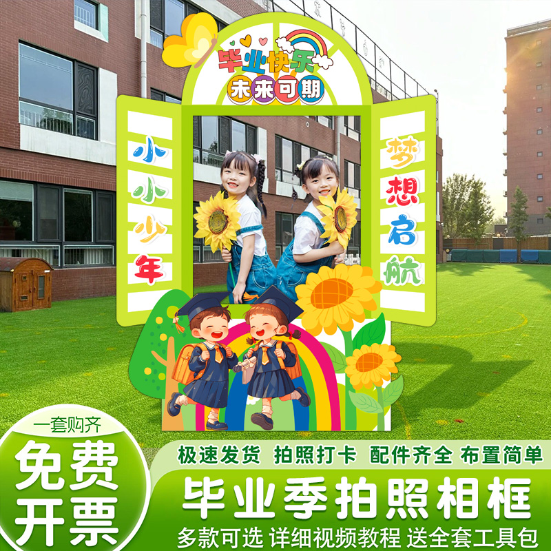 幼稚園の小学校の卒業シーズンの式典はシーンを配置して、カードを飾って写真を撮ります。