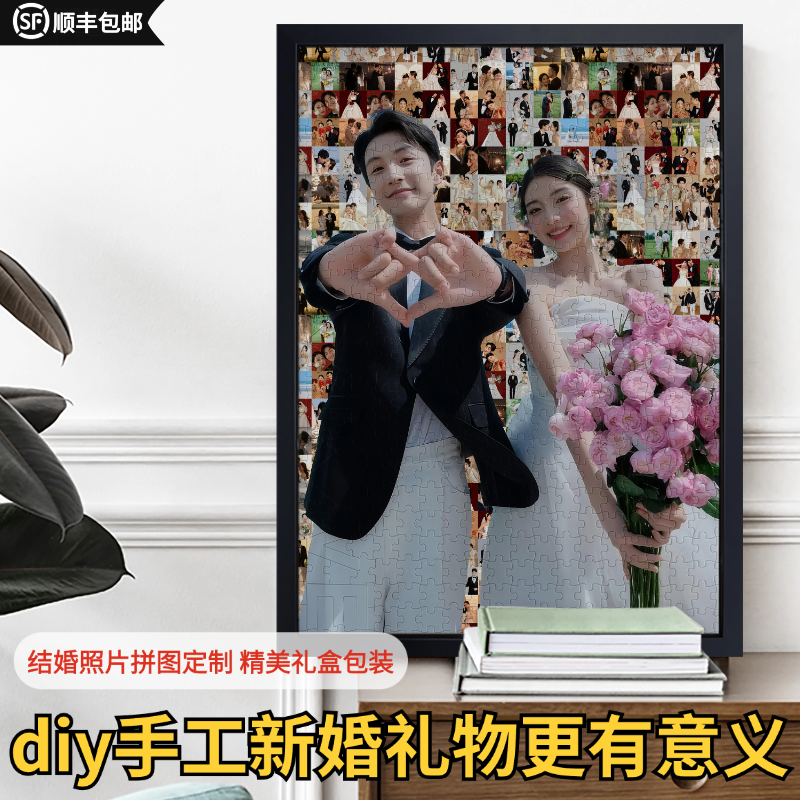 結婚プレゼントは新人に実用的なdiy手作りの花嫁の親友が婚約写真パズル卸売りをする