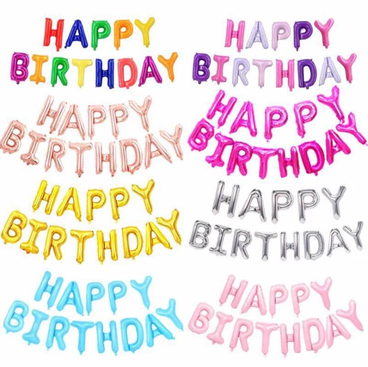 16インチ美版誕生日アルファベットセットアルミ膜風船旗吊り式英語誕生日おめでとうアルミ箔卸売り