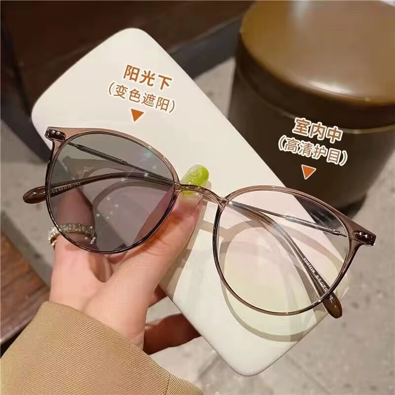 2023新品ラウンドフレームtr材质高级感変色近视ファッション高级変色めがね一眼镜三用メガネ