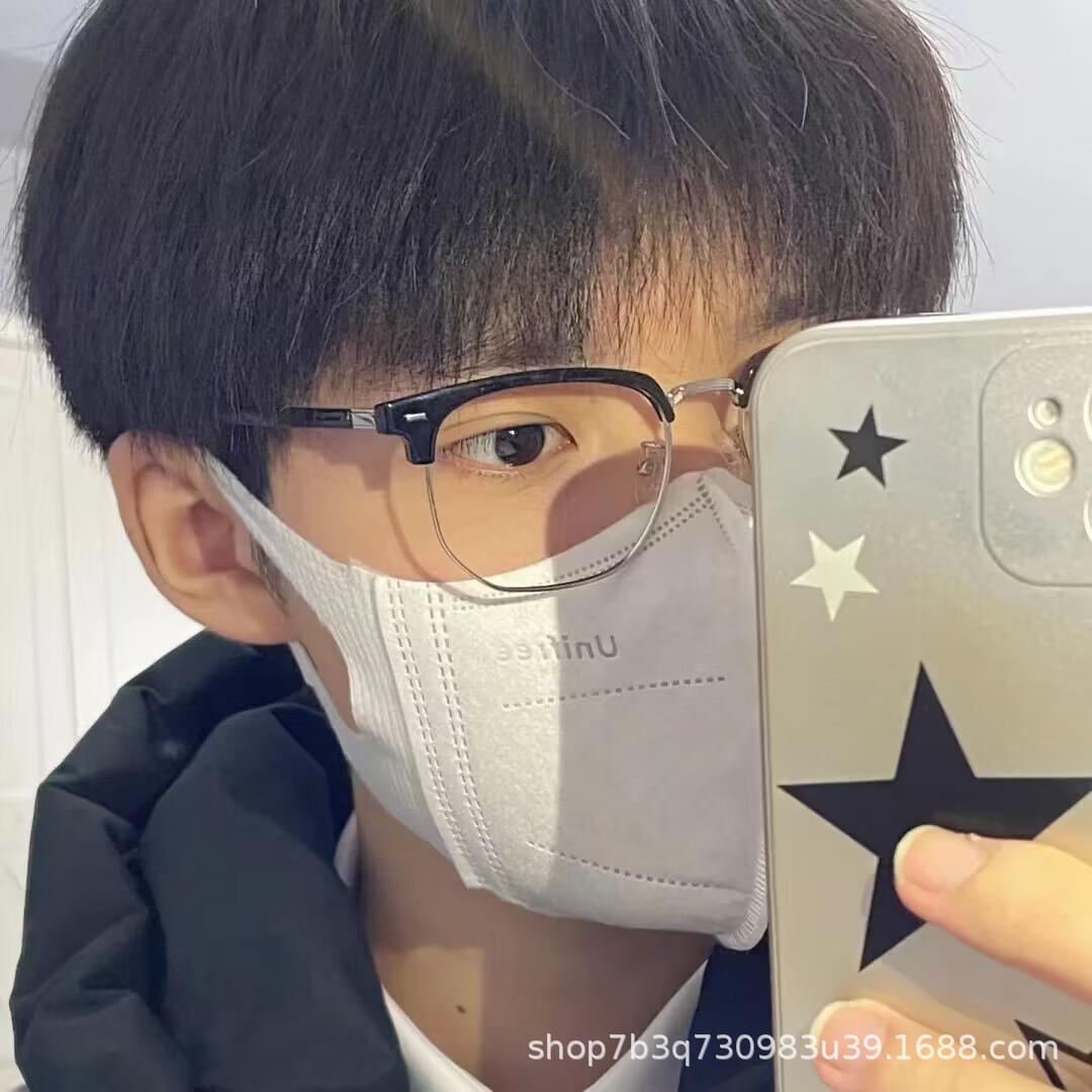 2023年ハーフフレーム眉型フレームブルーライトカットメガネカップル向けTRメタルフレーム無度メガネシンプルブルーライトカット強化版