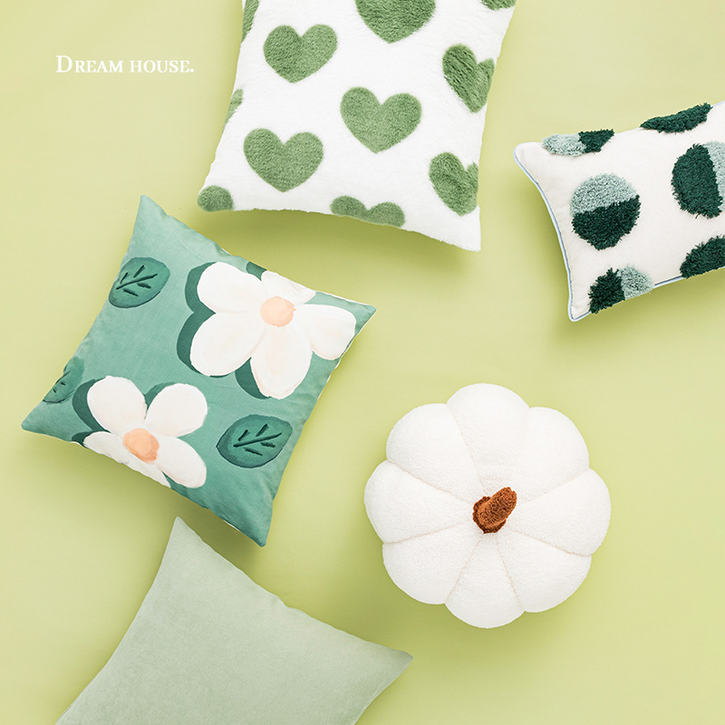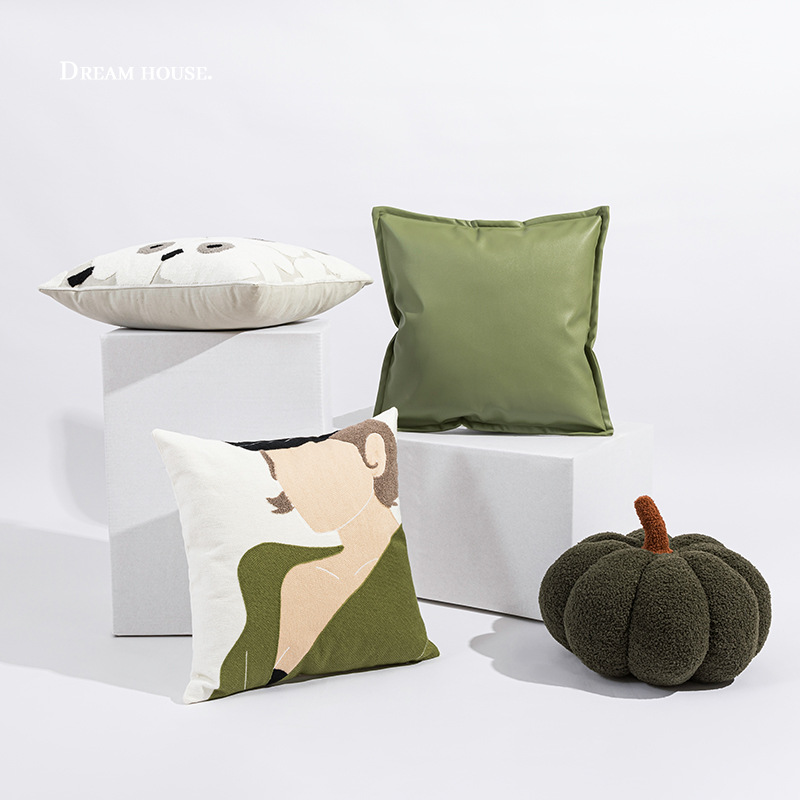 モダンインスタ风抱き枕オリーブグリーンケシ花柄クッションリビングソファ刺繍クッション抱き枕カバー卸売