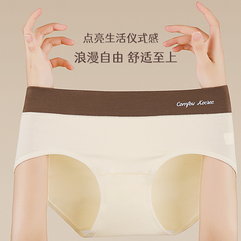 女の子用モーダル下着、女性用ポリ乳酸クロッチ10A抗菌ミッドウエスト高弾性ヒップカバーレディースブリーフ、シンプル