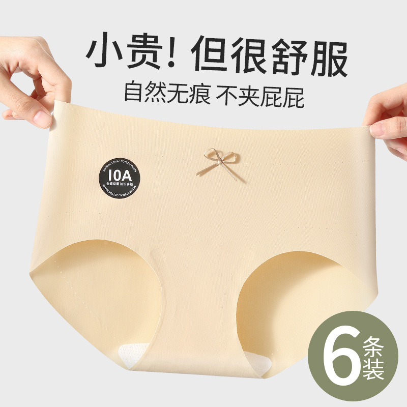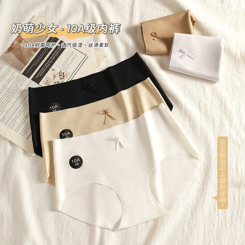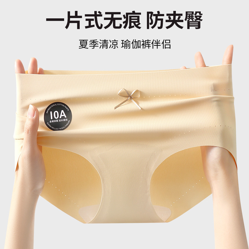 10A 抗菌シームレスヌード女性の下着ミルクスキンアイスシルクミッドウエスト純綿クロッチ高弾性夏のブリーフ卸売