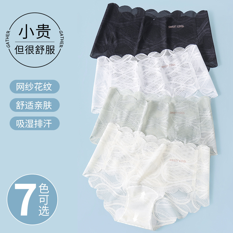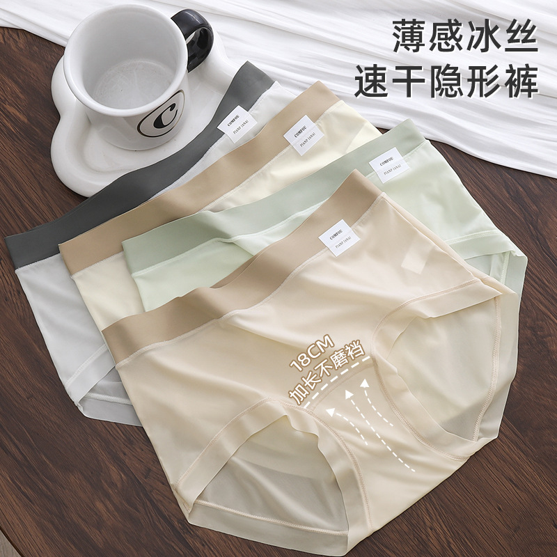 10A 抗菌シームレスアイスシルク女性の下着拡張純綿クロッチミッドウエストヒップガール下着小さな波下着