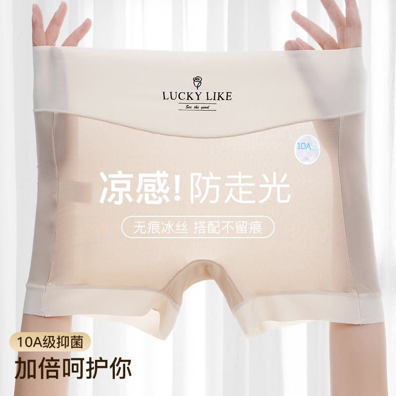 夏用アイスシルク安全パンツ、ハイウエストボクサーブリーフ、露出防止、快適、カールしない、極薄シームレス下着10A