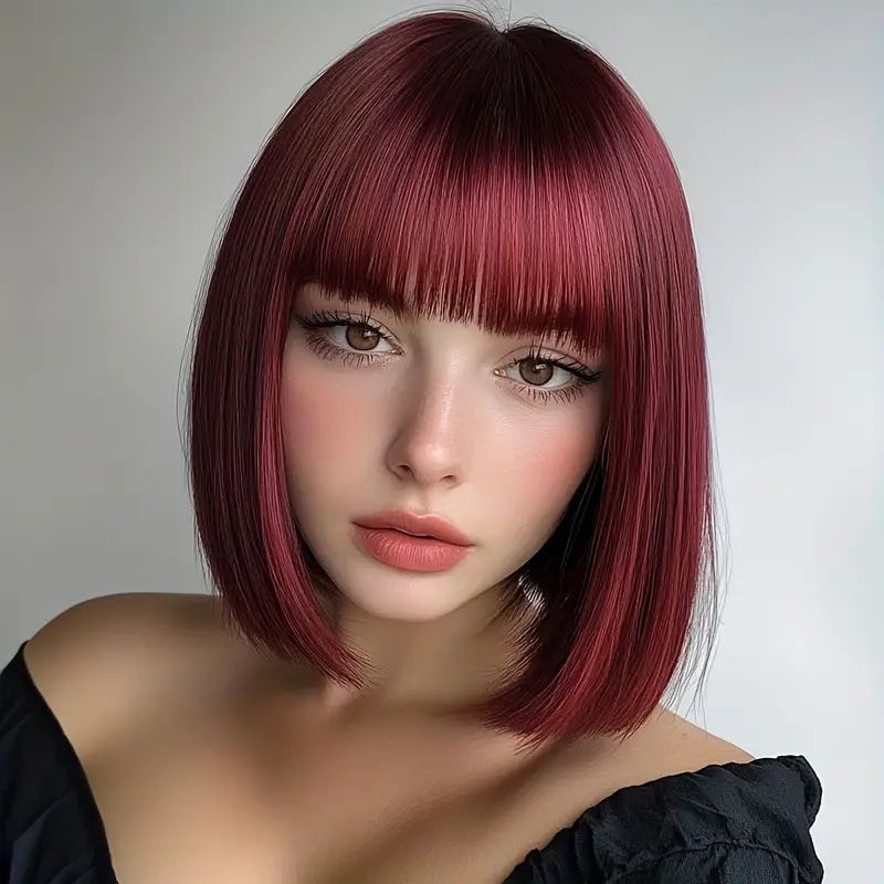 クロスボーダーファッション売れ筋ウィッグ前髪付きバーガンディショートヘアボボヘッドフルヘッドウィッグ女性用ヘッドギアスタイル